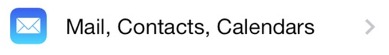 2. In the Settings menu, click the "Mail" option. In the more current iOS releases, the verbiage has changed to "Mail, Contacts, Calendars".